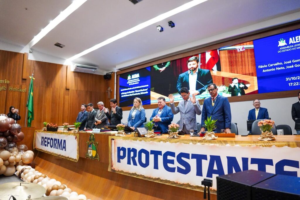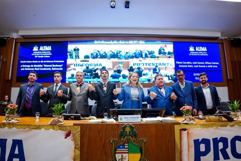 Uma sessão solene realizada pela Assembleia Legislativa do Maranhão, na tarde desta sexta-feira (31), no Plenário Nagib Haickel, marcou o Dia da Reforma Protestante e concedeu a Medalha Manuel Beckman aos pastores Flávio Carvalho de Araújo, Jefté Lima Cavalcante, José Cutrim Gomes e Wilson Dantas Ribeiro. A proposição foi da deputada Mical Damasceno (PSD), que presidiu o ato.
