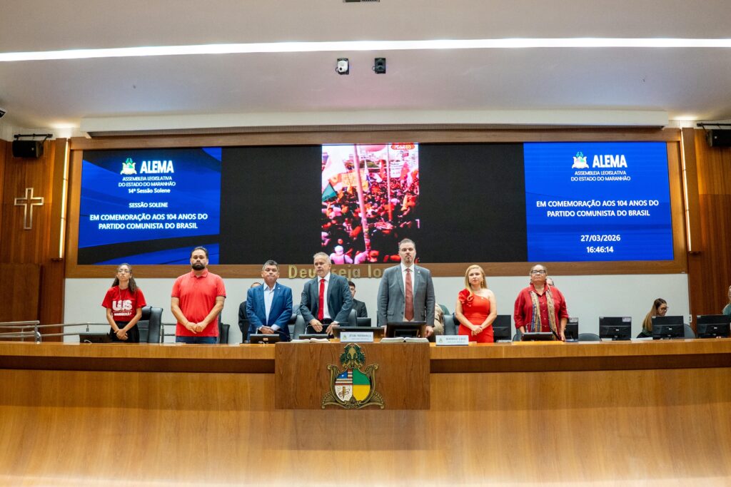 A Assembleia Legislativa do Maranhão realizou, nesta sexta-feira (27), no Plenário Nagib Haickel, uma sessão solene em comemoração aos 104 anos do Partido Comunista do Brasil (PCdoB). A homenagem foi proposta pelos deputados Rodrigo Lago, Júlio Mendonça e Ricardo Rios, por meio do Requerimento nº 064/2026.