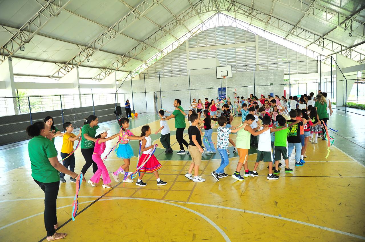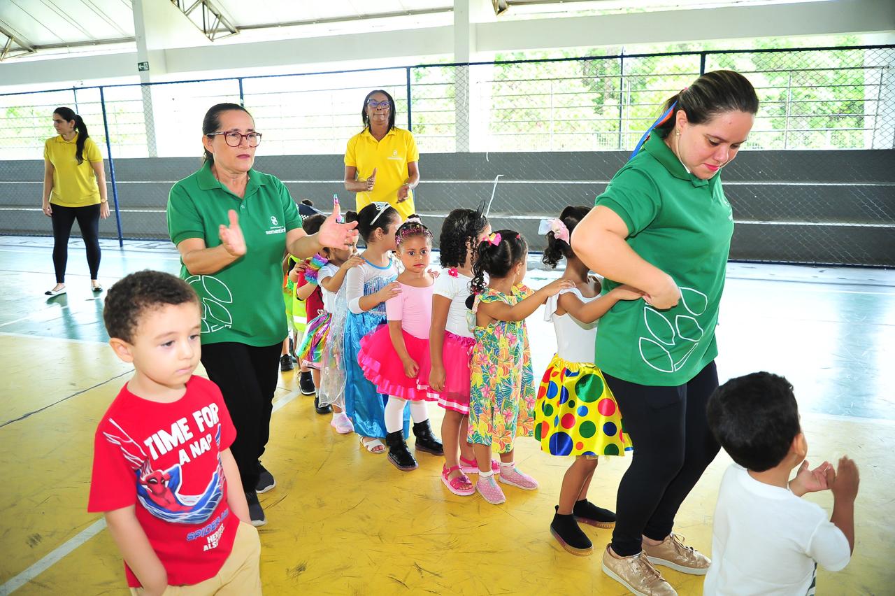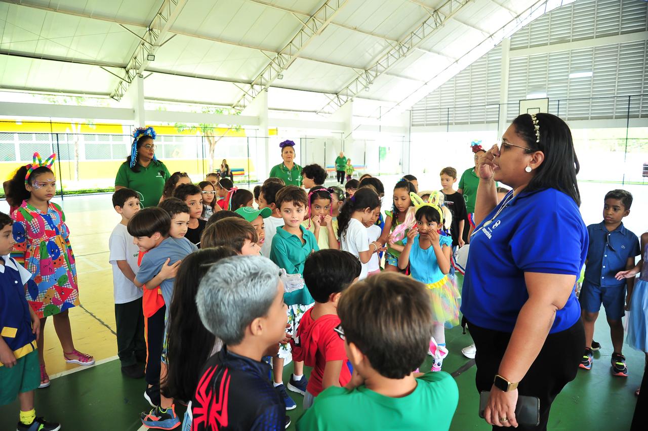A proposta envolveu crianças de todas as turmas em momentos de convivência, brincadeiras e apresentações lúdicas