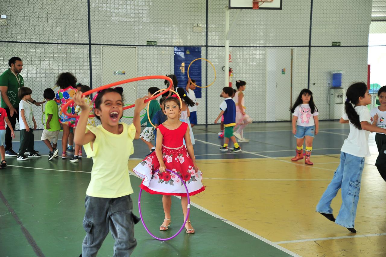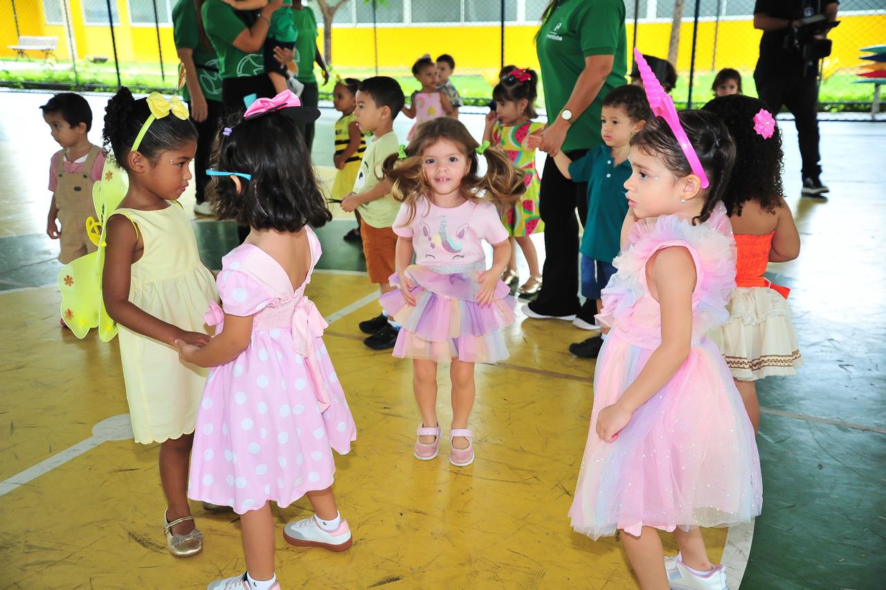 A proposta envolveu crianças de todas as turmas em momentos de convivência, brincadeiras e apresentações lúdicas, reforçando valores como interação, socialização e respeito às diferenças.