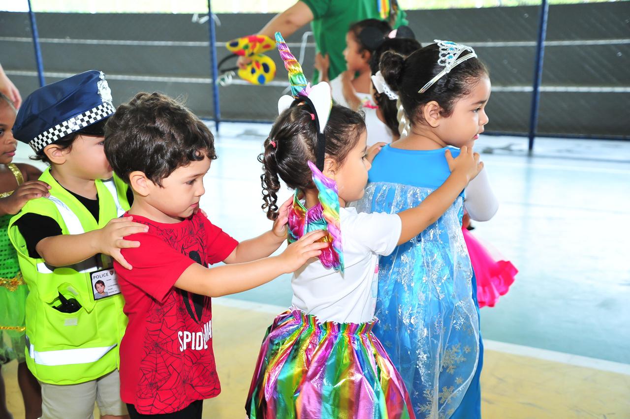 A participação das famílias também foi incentivada. Os alunos puderam comparecer com fantasias ou roupas coloridas, conforme a escolha de cada responsável, mantendo a proposta de liberdade e acolhimento.