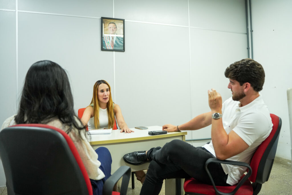 Davi Brandão durante a reunião com Thayza Hortegal e Izabel Munique