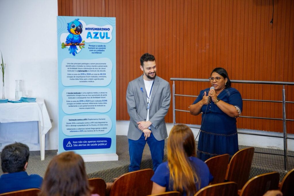 A Assembleia Legislativa do Maranhão promoveu, na manhã desta segunda-feira (17), a campanha nacional ‘Novembrinho Azul’, iniciativa que busca promover a saúde do homem desde a infância. A ação, realizada no auditório da Creche-Escola Sementinha, contou com palestra do urologista Rafael Campos sobre a importância da identificação precoce de condições que podem impactar a vida adulta.