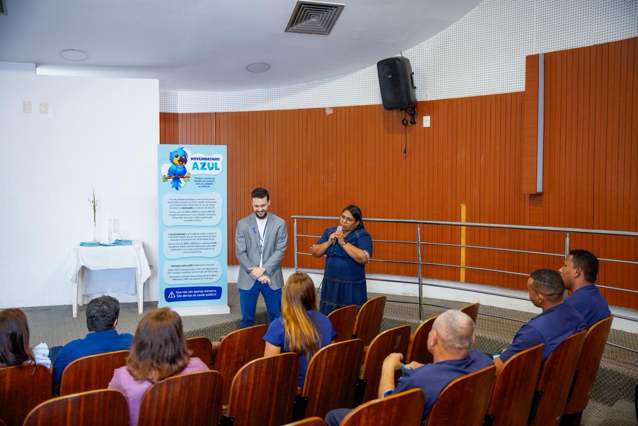 A Assembleia Legislativa do Maranhão promoveu, na manhã desta segunda-feira (17), a campanha nacional ‘Novembrinho Azul’, iniciativa que busca promover a saúde do homem desde a infância. A ação, realizada no auditório da Creche-Escola Sementinha, contou com palestra do urologista Rafael Campos sobre a importância da identificação precoce de condições que podem impactar a vida adulta.