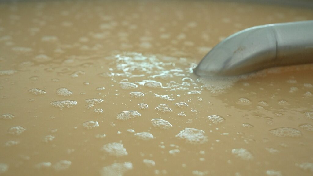 A fermentação ocorre em um ambiente cuidadosamente monitorado, onde o fermento neutraliza todo o açúcar presente na mistura. “Aqui fica com um cheirinho de pão”, descreve Margô, ao explicar o processo.